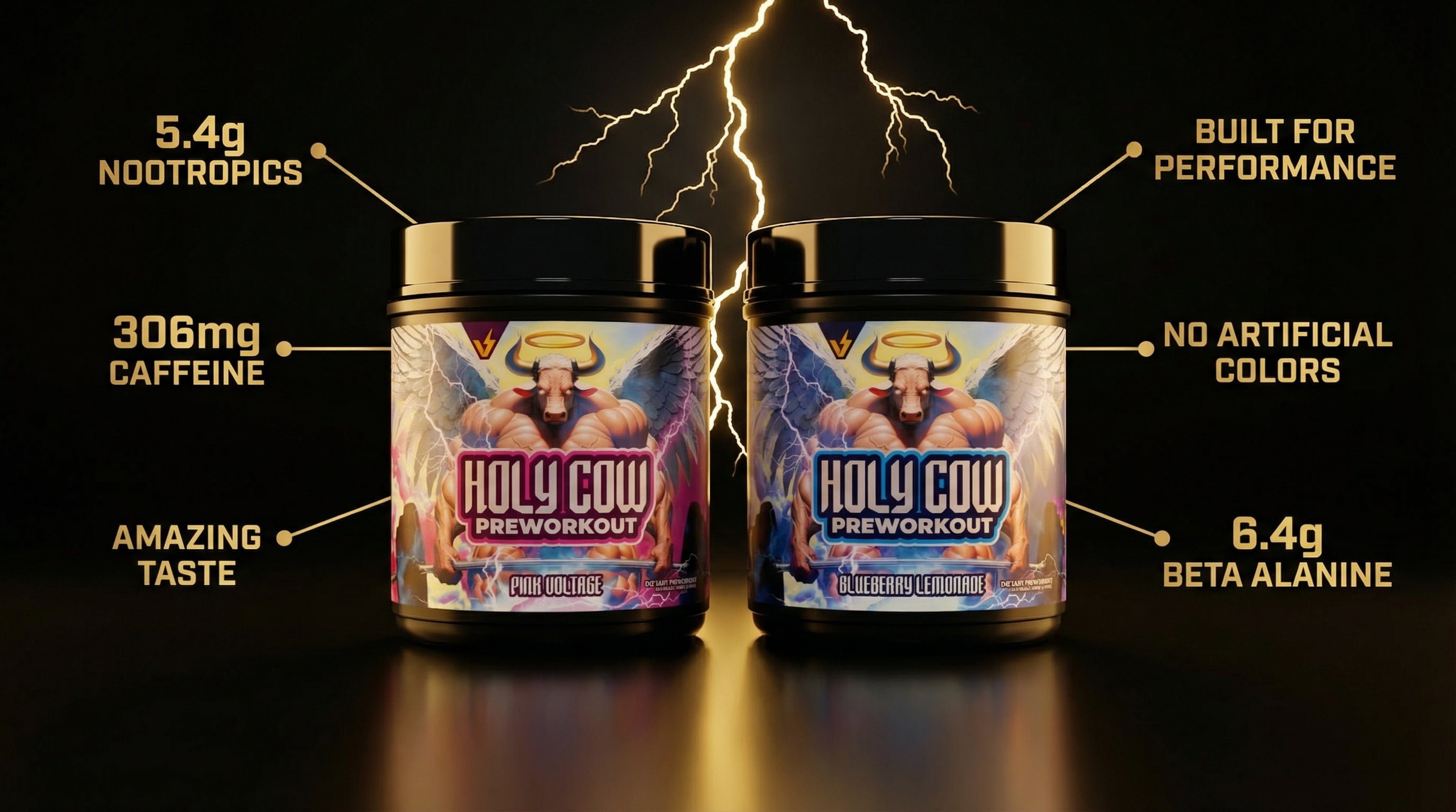 Tired of pre-workouts that don't deliver? The search for a truly STACKED Pre is over. We're proud to introduce HOLY COW PREWORKOUT. A daily driver built for every level of lifter. With two incredible flavors, Blueberry Lemonade and Pink Voltage, this is more than just a supplement; it's a statement. Get ready to go LIFT LIVID.
